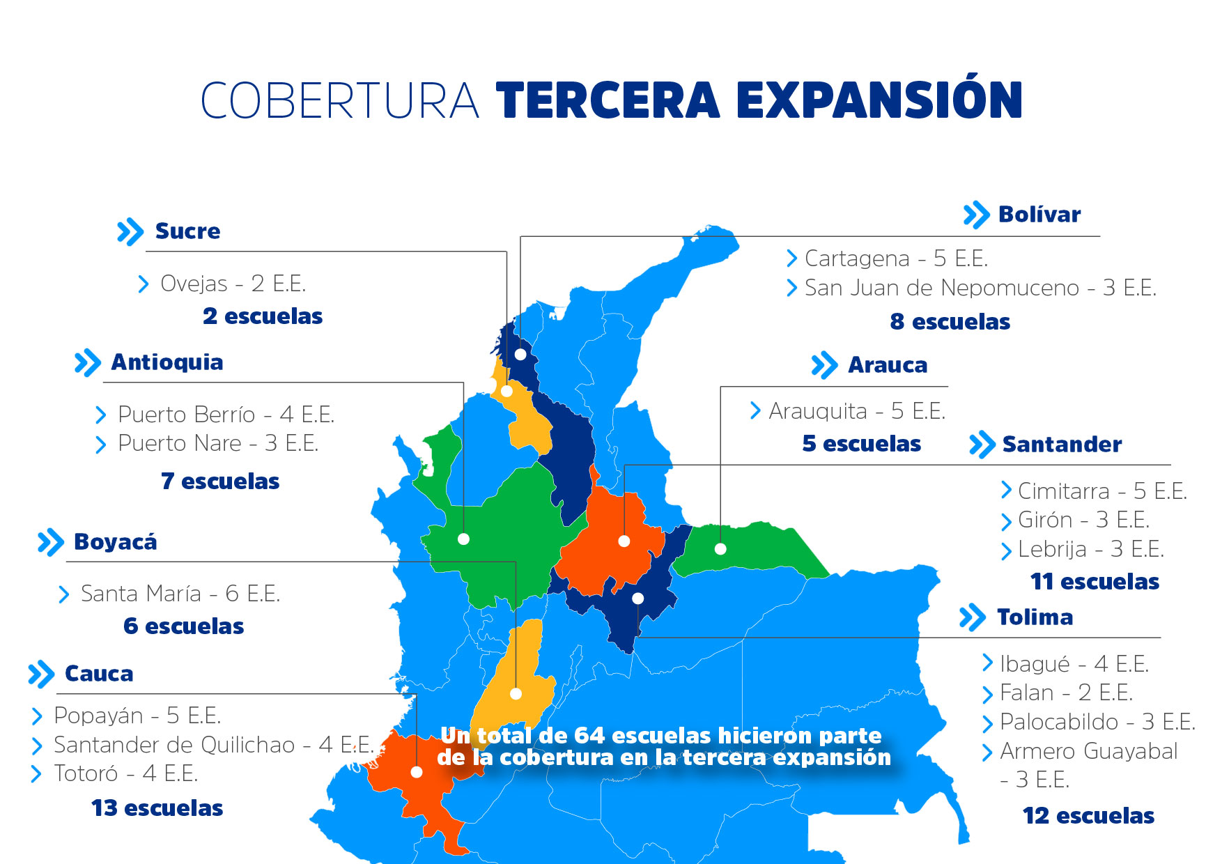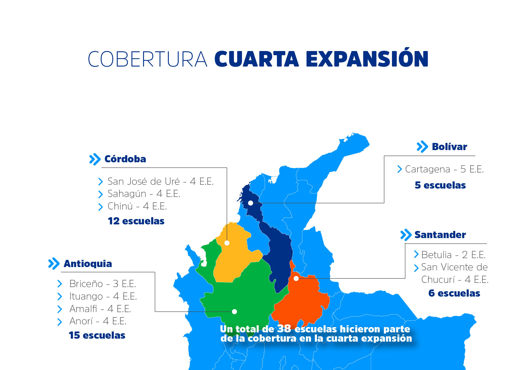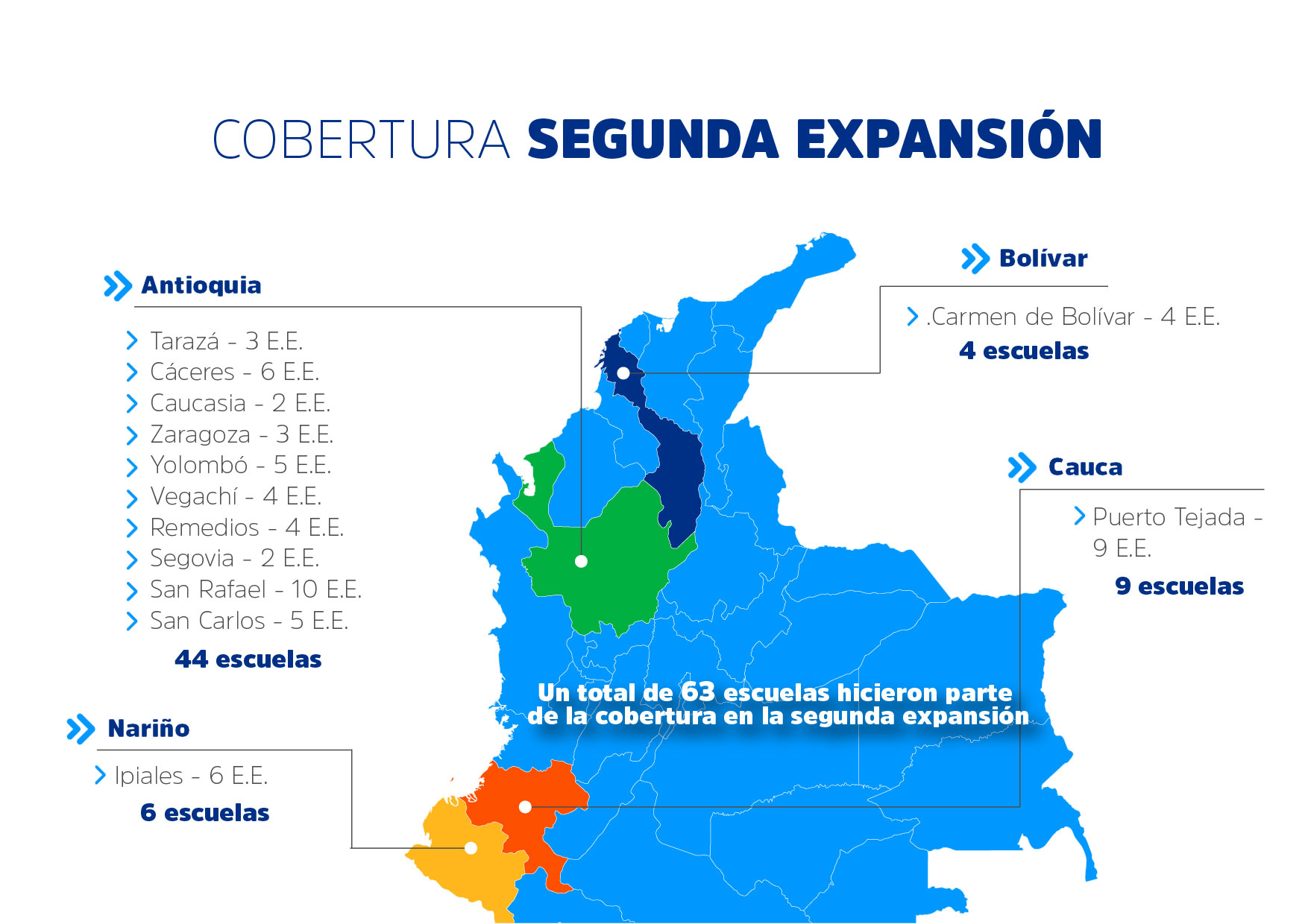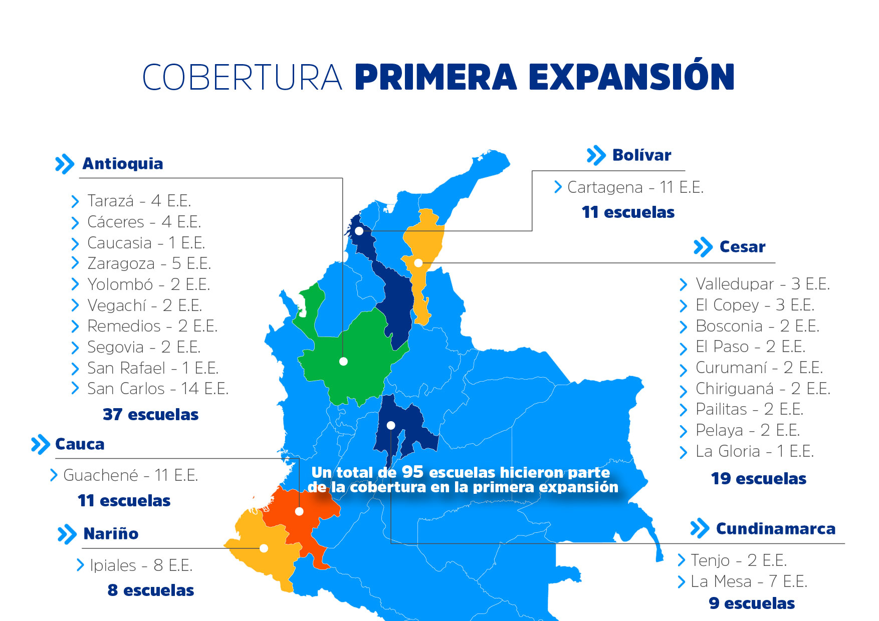 A la fecha los 38 establecimientos educativos que hacen parte de la expansión se encuentran finalizando la Fase de Arranque. Esta fase fue implementada en los meses enero, febrero y marzo.